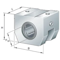 Линейные шарикоподшипники и подшипники скольжения в сочетании с корпусами INA поставляются в виде готовых комплектов. Радиальный стопорный болт фиксирует подшипник в корпусе против осевого сдвига. Корпуса это жесткие конструкции из высокопрочного алюминиевого сплава, позволяющего полностью реализовать грузоподъемность установленного подшипника. В массивной серии применяются также чугунные корпуса. Благодаря сравнительно небольшой общей массе, комплекты оптимально подходят для облегченных конструкций, работающих с высокими нагрузками, значительными ускорениями и скоростями перемещения.